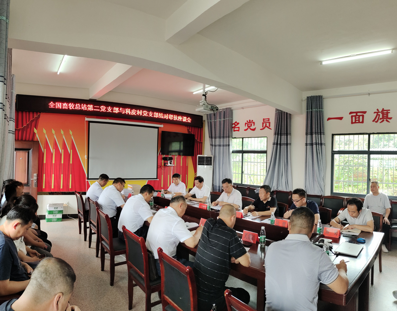 座谈会上,第二党支部书记刘丑生同志介绍了支部开展主题教育进展情况,支部党员与科皮村村委党员就结对帮扶具体事宜进行了交流讨论。时建忠书记对科皮村推进乡村振兴与巩固脱贫攻坚中形成的“五树五建”基层治理模式等工作成效给予了充分肯定,并指出,开展基层党组织结对帮扶工作是坚决落实部党组安排部署的重要政治任务,是巩固拓展脱贫攻坚成果同乡村振兴有效衔接的一项重要举措。科皮村要发挥好基层党组织的战斗堡垒作用,提升党员群众思想政治素养,把党的二十大精神贯穿融入乡村治理各方面、全过程。要求第二党支部要抓紧谋划落实科皮村提出猕猴桃林下养殖地方鸡的诉求,提出切实可行的帮扶方案,为科皮村村民增收贡献总站智慧。活动中,总站为科皮村捐赠了畜禽遗传资源保护与利用、生猪养殖生物安全以及家禽科普等方面书籍。同时就湖南省农业农村厅准备申报的张家界白羽乌鸡,崀山鸡,武雪山羊等新资源情况进行了研讨。还对永顺县凤头鸭养殖场和湘西芙蓉资源农业科技有限公司进行了实地调研和现场技术指导。