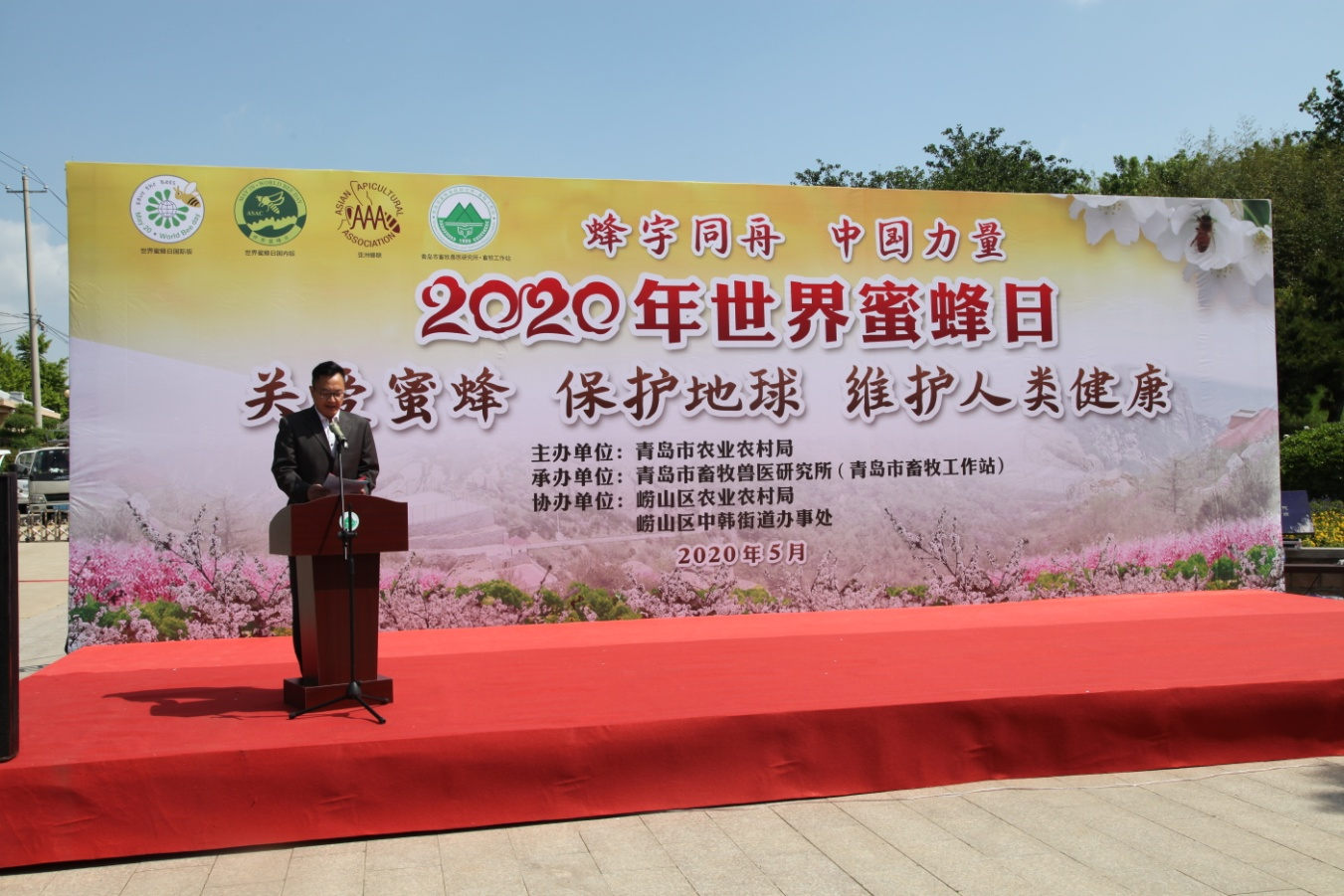 活动由青岛市农业农村局畜牧处处长曲甫主持,崂山区农业农村局局长王妮妮致欢迎词。蜜蜂在自然生态系统中的食物链方面起着重要的桥梁作用,使众多植物得以繁衍。但是环境污染、农作物单一化种植等,导致蜜蜂的生存环境日益恶化。因此,青岛市畜牧工作站站长周围发起“关爱蜜蜂,保护地球”的倡议,青岛市农业农村局二级巡视员张国华率先响应倡议,在承诺板上签名,把活动推向了高潮。