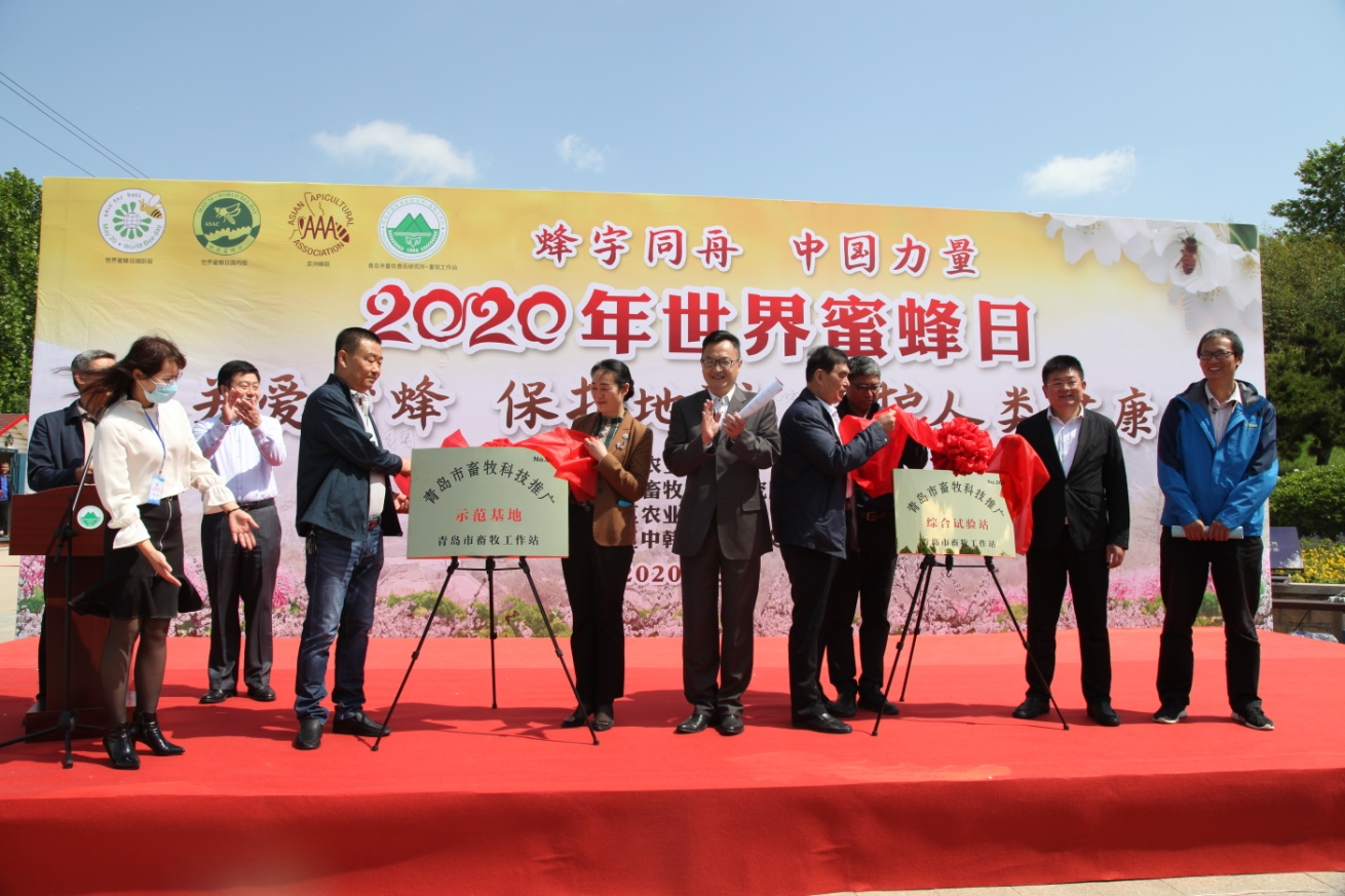 蜂业对农业提质增效和绿色发展、美丽乡村建设、农民增收致富具有重要作用。为提升蜂业发展水平,发挥典型场户的示范引领作用,青岛市畜牧工作站在全市遴选了养蜂技术试验与示范基地、综合试验站。活动现场,青岛市农业农村二级巡视员张国华、崂山区农业农村局局长王妮妮分别为青岛山色红樱桃种植专业合作社(示范基地)、青岛姜岐中华蜜蜂研究院(综合试验站)揭牌,强化蜂业科技支撑,推行标准化养蜂生产,也标志着青岛市畜牧科技推广体系建设开启新的征程。