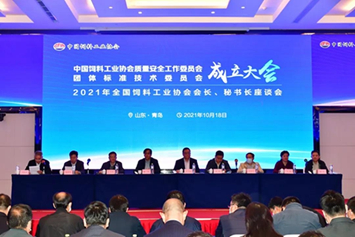 为了全面系统地分析饲料法律法规执行情况,有针对性地开展法律法规宣贯培训和推广应用工作,切实帮助会员解决实际生产与法律法规不适应、不一致的地方,2021年10月18日,中国饲料工业协会质量安全工作委员会和团体标准技术委员会成立大会暨2021年全国饲料工业协会会长、秘书长座谈会在山东青岛召开,会上宣读了中国饲料工业协会关于成立质量安全工作委员会和团体标准技术委员会的通知,宣读了委员、专家组名单和团体标准技术委员会名单并颁发了证书,通过了中国饲料工业协会团体标准管理办法,公布了2021年第一批团体标准立项项目。全国畜牧总站站长、中国饲料工业协会常务副会长兼秘书长王宗礼出席会议并讲话。国家市场监督管理总局标准创新管理司二级巡视员姬二明,农业农村部畜牧兽医局副局长孔亮,山东省畜牧兽医局党组副书记、二级巡视员刘凤军,青岛市农业农村局二级巡视员张国华参加会议并致辞。
