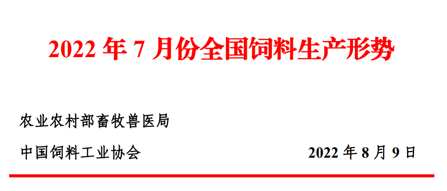 据样本企业数据测算,2022年7月,全国工业饲料产量2458万吨,环比增长5.4%,同比下降6.8%。从品种看,猪饲料产量983万吨,环比增长4.0%,同比下降11.1%;蛋禽饲料产量246万吨,环比下降1.1%,同比下降8.7%;肉禽饲料产量743万吨,环比增长6.0%,同比下降9.0%;水产饲料产量344万吨,环比增长16.6%,同比增长11.8%;反刍动物饲料产量116万吨,环比下降0.3%,同比增长4.5%。