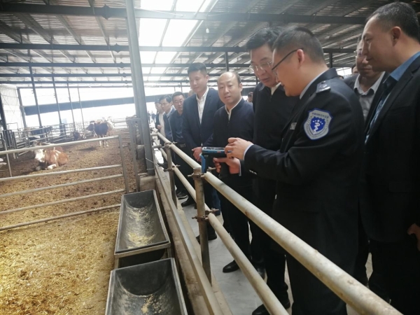 会前,与会人员现场观摩了莒县尊亨牧业项目实施情况,项目管理人员介绍了肉牛电子登记和金山表单报送数据方法。