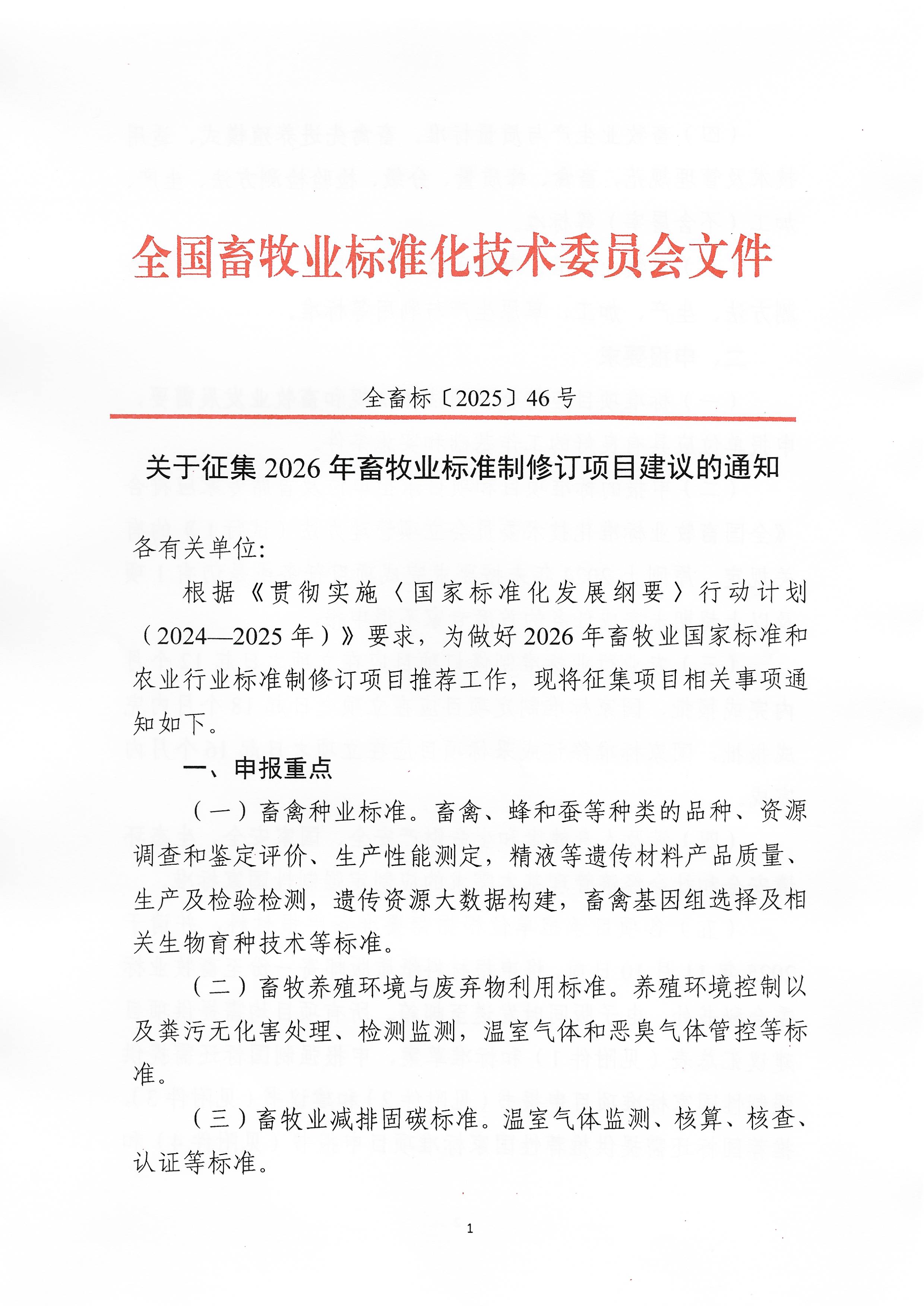 关于征集2026年畜牧业标准制修订项目立项建议的通知.pdf