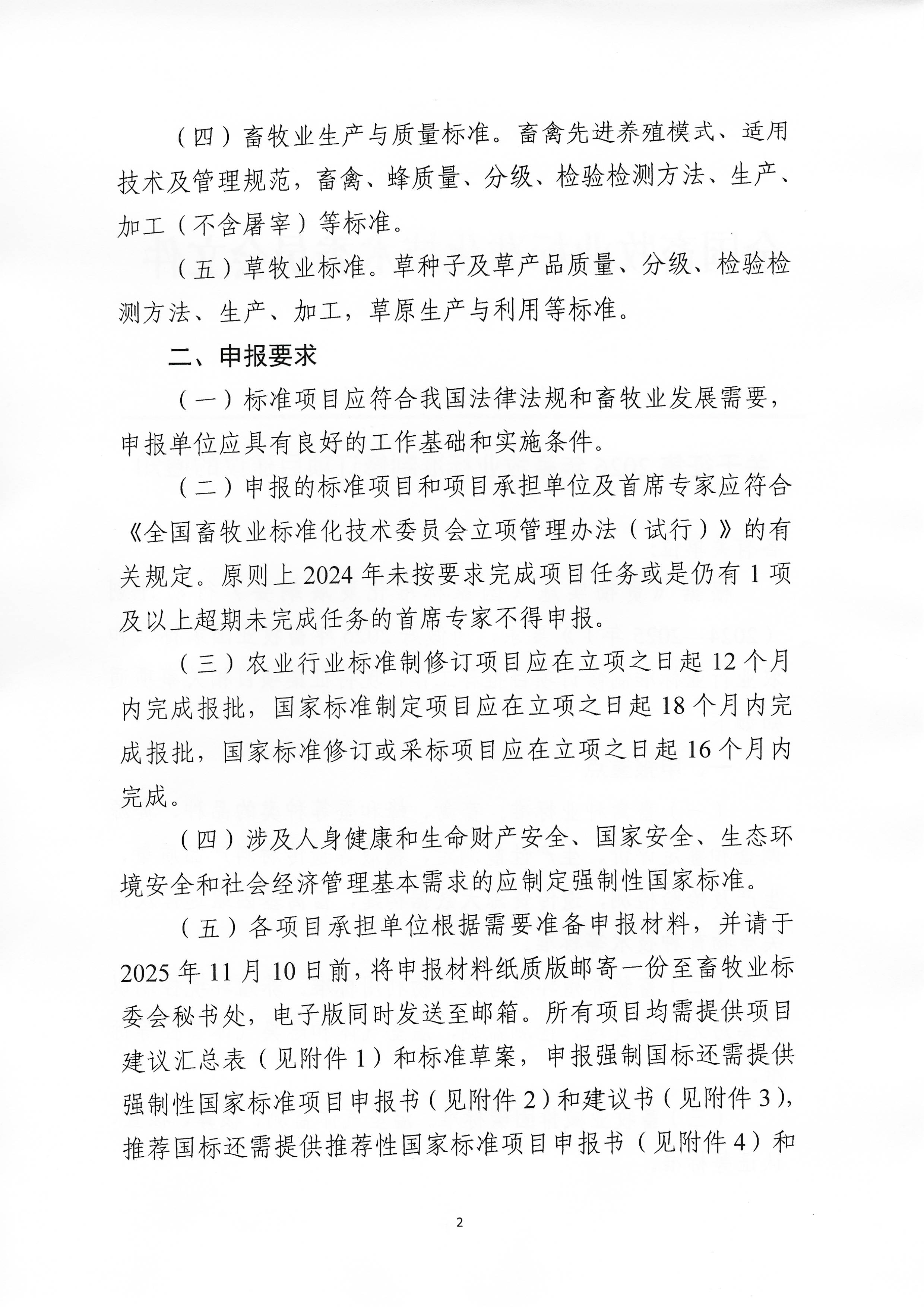 关于征集2025年畜牧业标准制修订项目建议的通知