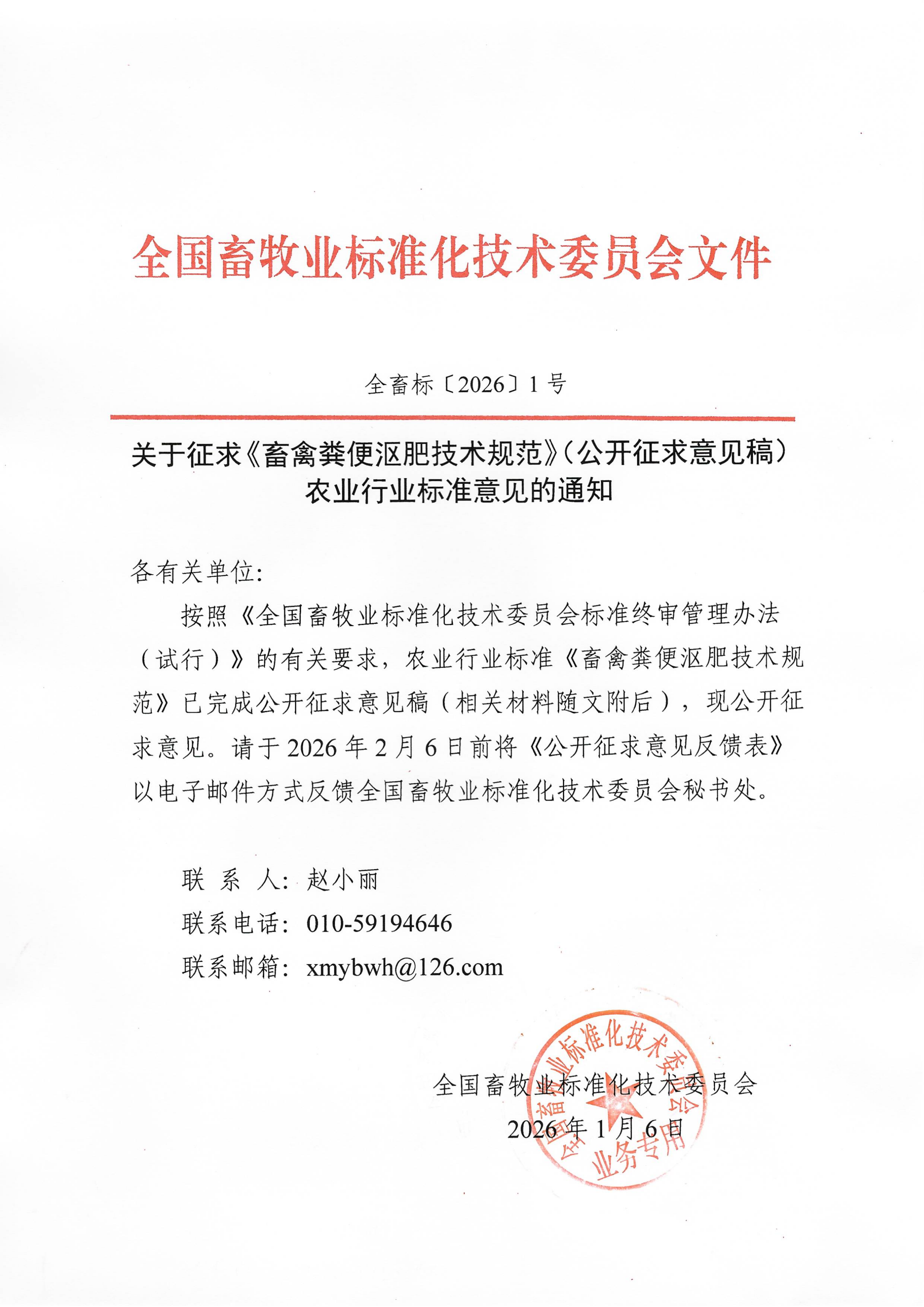 关于征求《畜禽粪便沤肥技术规范》(公开征求意见稿)农业行业标准意见的通知