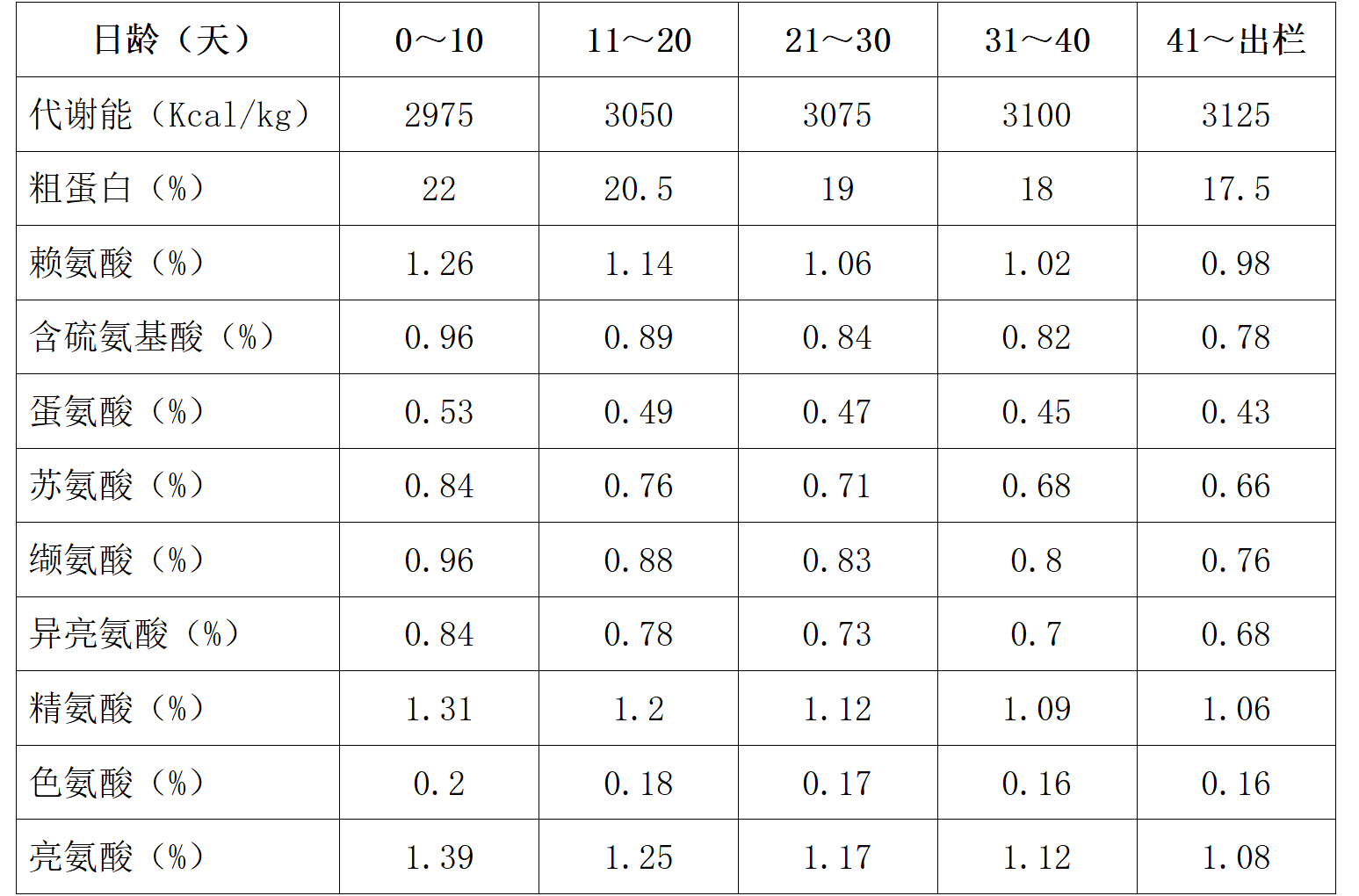 表:爱拔益加(AA)白羽肉鸡可消化氨基酸需要量