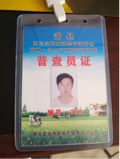 创新做法3:我市萧县普查工作领导小组设计制作并发放了普查员证,正面是普查员照片、信息和发证机关,背面是国家畜禽遗传资源品种名录二维码,方便普查员在入户登记过程中快速对比畜禽特征性能,提供了判定依据,也提高了普查的精准度。提高普查工作的精准度,也提高了广大养殖户对普查员工作的支持度和信任度。(来源:宿州市农业农村局 杨敏)