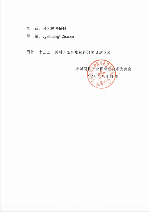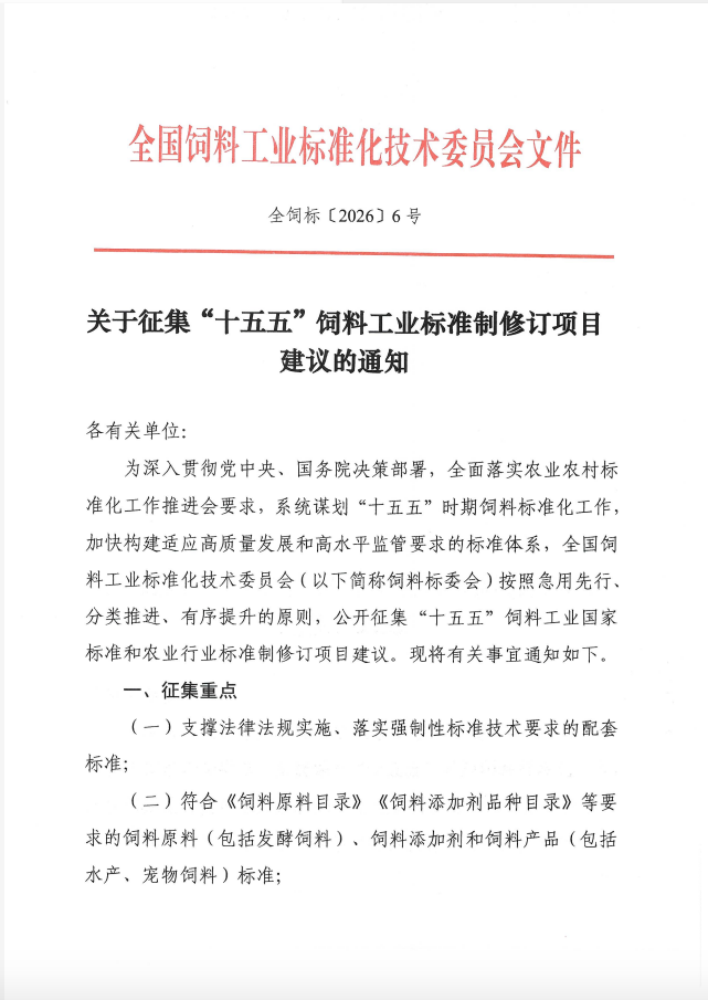 关于征集“十五五”饲料工业标准制修订项目建议的通知
