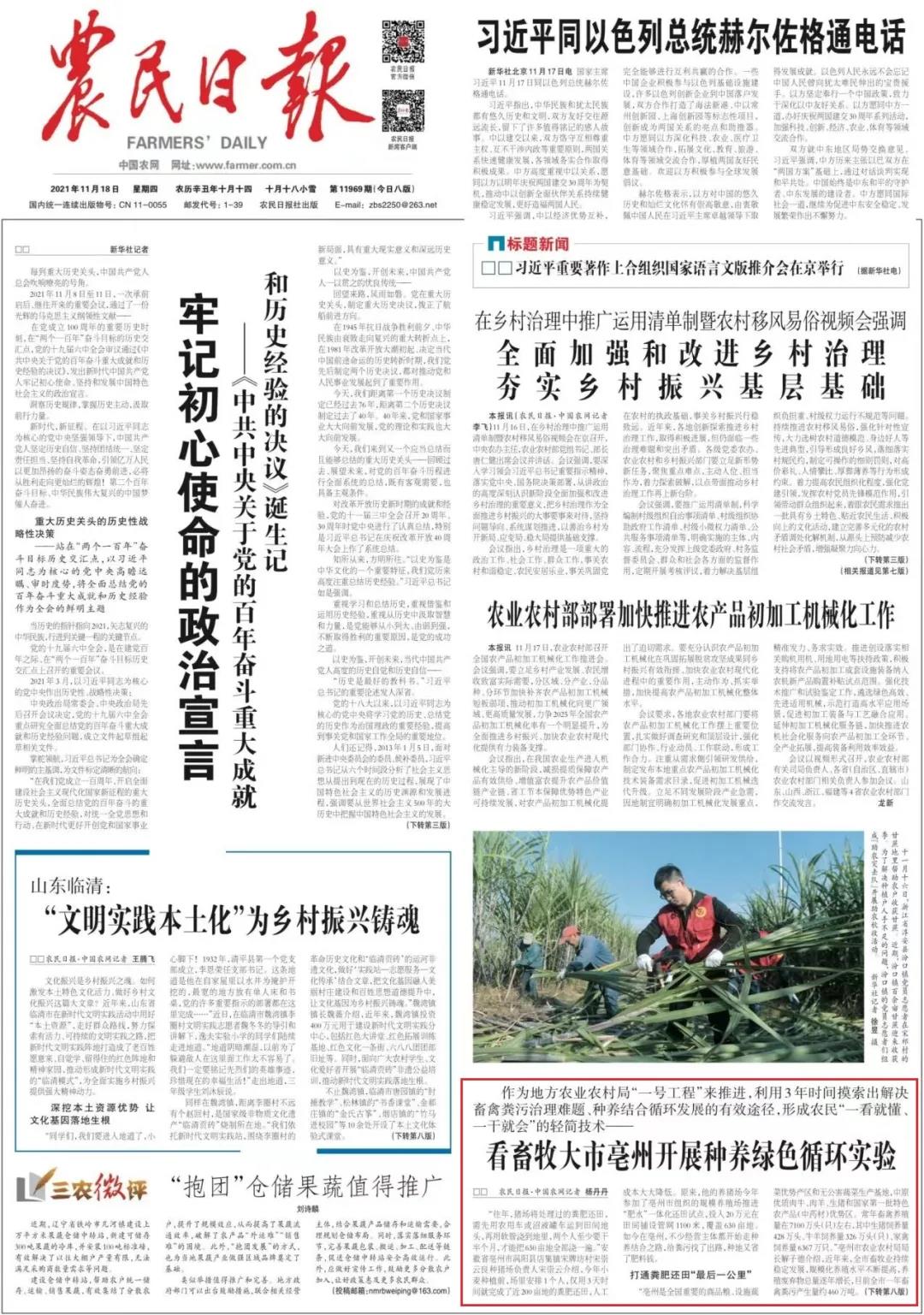 “管网进田是路径,但粪水还田多少量、还多长时间等是一个复杂的工程,需要实验积累和数字论证。对每一片肥水还田的土地,工作人员都进行了取样跟踪、适时监控和数字记录,通过近3年时间的比对实验找到了最佳组合。”解子德说,虽然不是上级部门的指定工程,但这项农业高质量发展的基础性、功在未来的工作,已被列为亳州市农业农村局“一号工程”来推进。