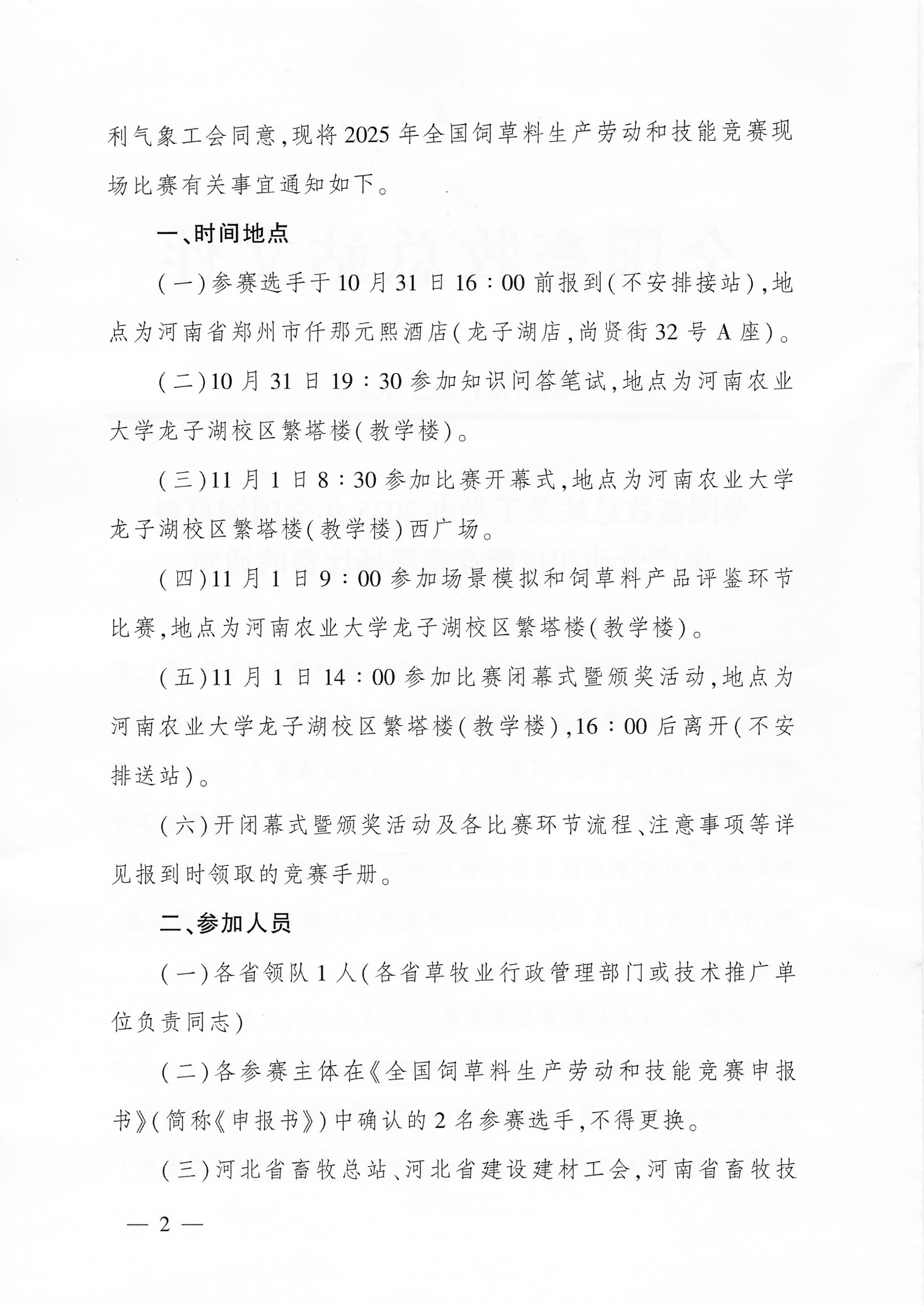 全国畜牧总站关于举办2025年全国饲草料生产劳动和技能竞赛现场比赛的通知