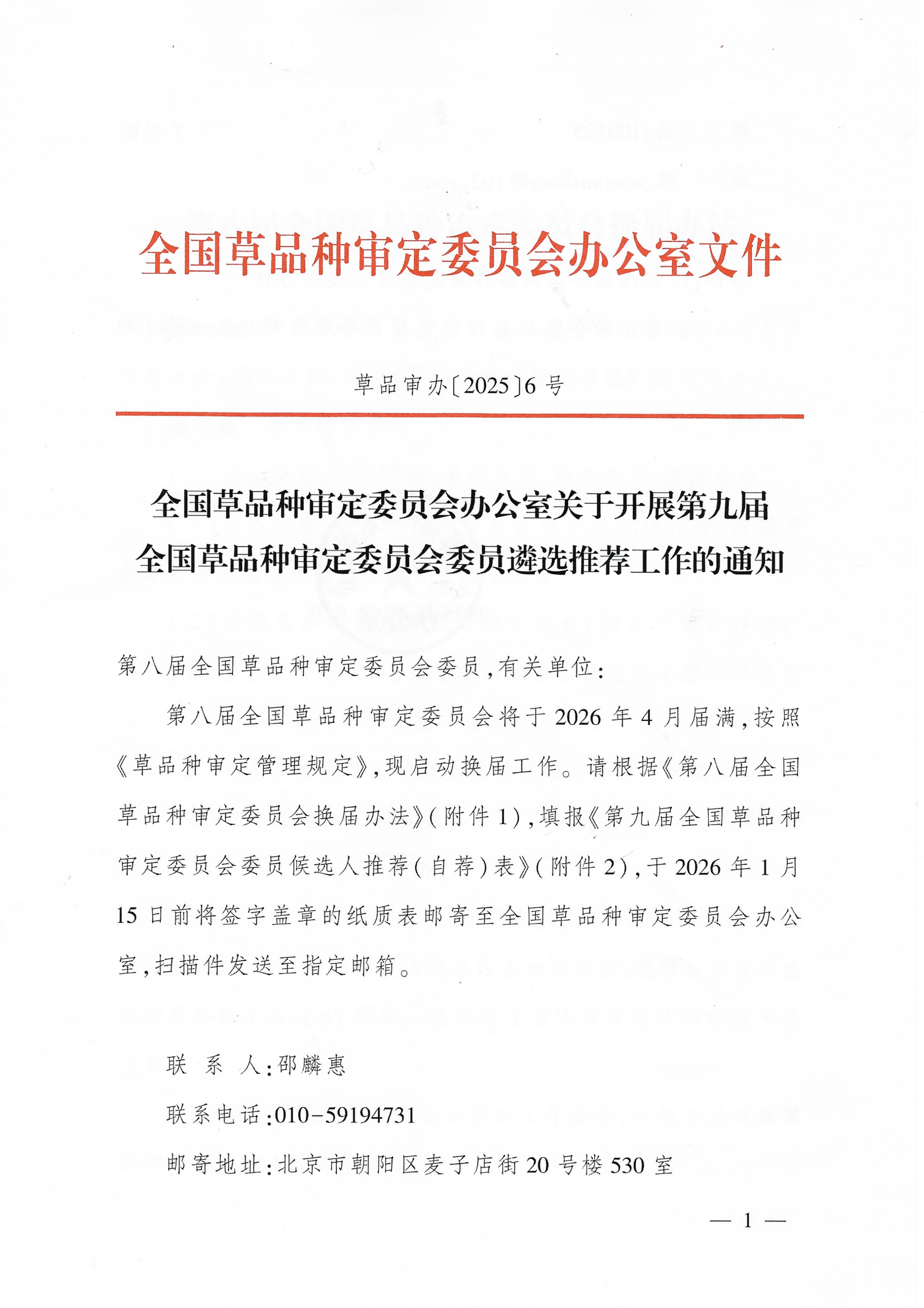 全国草品种审定委员会办公室关于开展第九届全国草品种审定委员会遴选推荐工作的通知