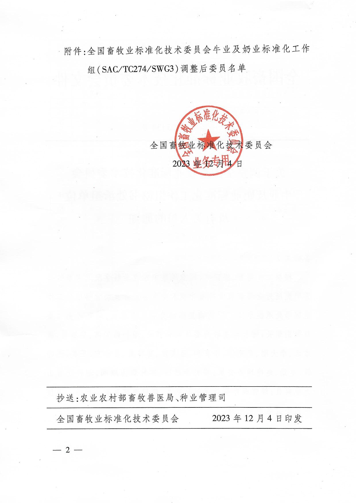 关于调整全国畜牧业标准化技术委员会牛业及奶业标准化工作组秘书处承担单位及有关人员的通知.pdf