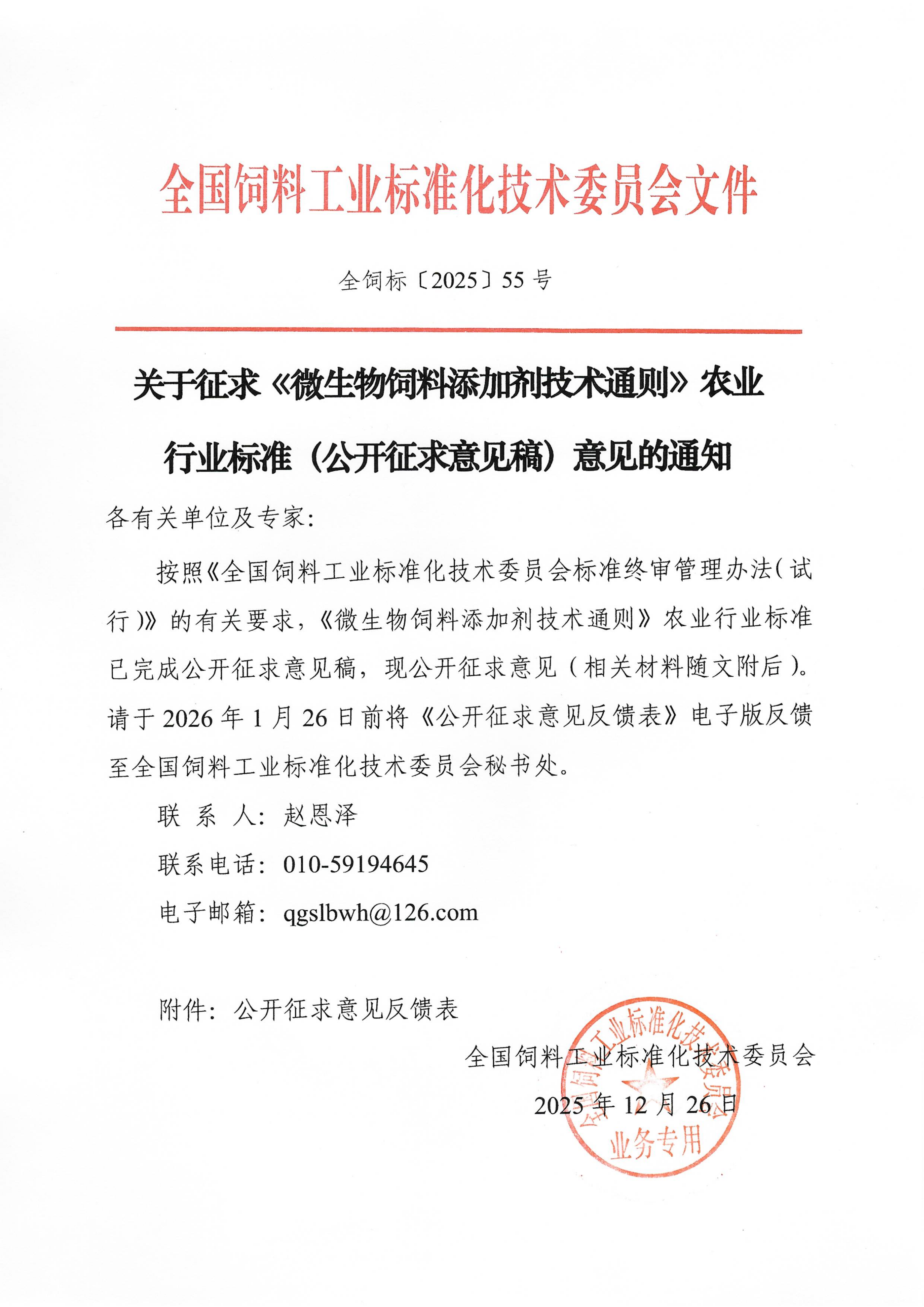 关于征求《微生物饲料添加剂技术通则》农业行业标准(公开征求意见稿)意见的通知