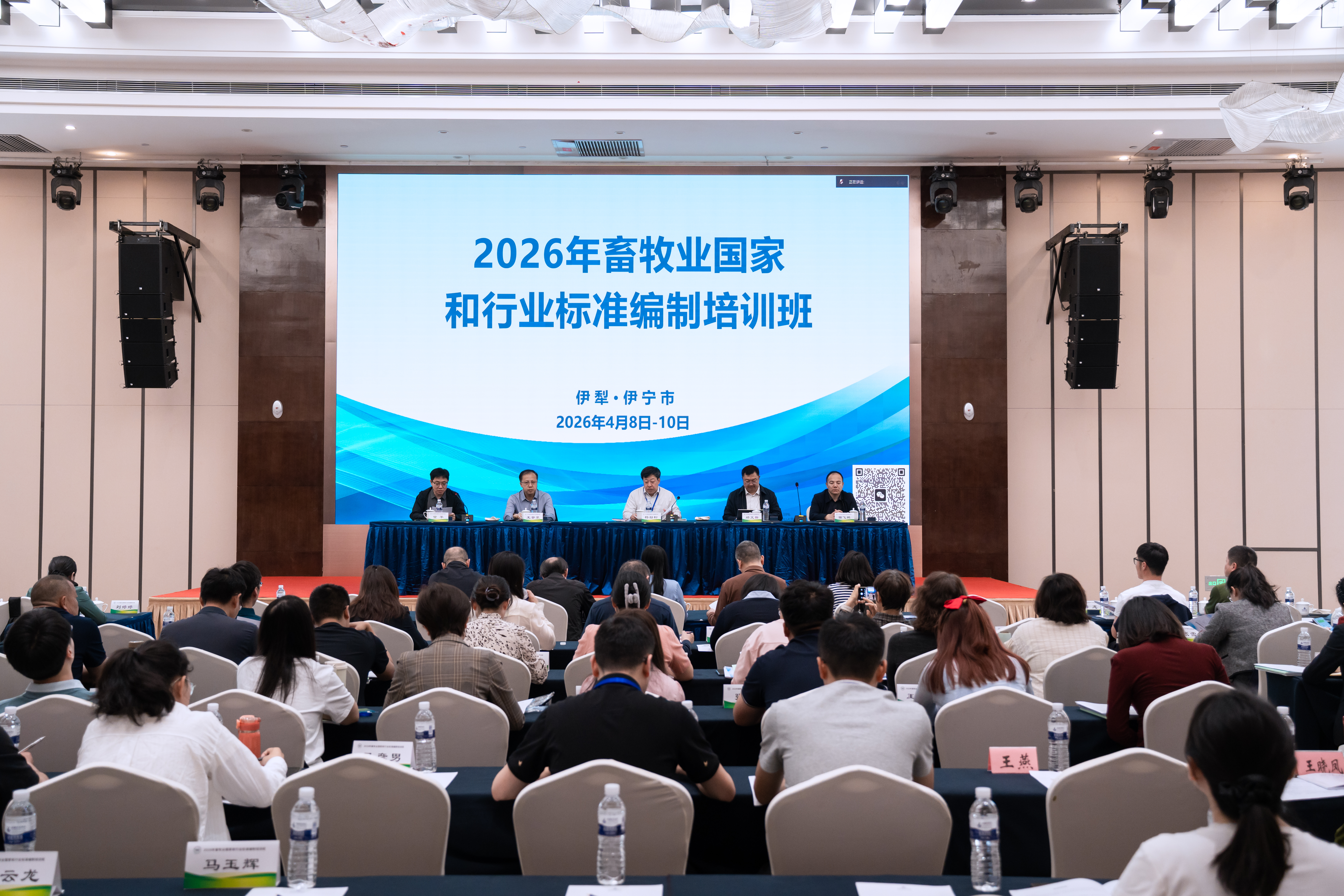 为贯彻落实韩俊部长“推动标准制定更加科学、标准体系更加完善、标准执行更加有效”的部署要求,全国畜牧业标准化技术委员会(以下简称标委会)于2026年4月8日~10日在新疆伊犁组织标准编制培训班、召开在研标准推进会。全国畜牧总站副站长、标委会主任委员杨劲松,新疆农业大学校长、标委会羊业及特色畜产业标准化工作组组长郑文新,新疆畜牧科学院院长王金泉等领导出席培训开班式;新疆畜牧科学院畜牧业质量标准研究所所长、标委会羊业及特色畜产业标准化工作组秘书长宫平主持开班式。